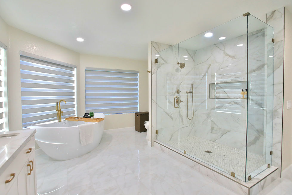 Indulge in the luxurious bathrooms with marble, gold accents, and elegant decor. These projects exemplify opulence and sophistication in every detail.